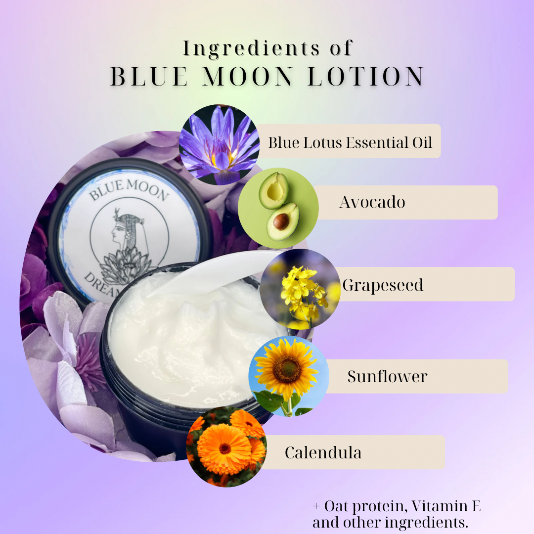 *Blue Moon Dream Lotion can be used on hands and body to help calm your energy and feel relaxed. Thick creamy consistency it blends beautifully clear and does not leave a oily or sticky film at all, leaving skin nicely hydrated and lightly scented with hint of Blue Lotus. Made for sensitive skin but please patch test prior to use in case you are sensitive to essential oils. Best used before bed or before meditation. Leaves skin hydrated and silky smooth.